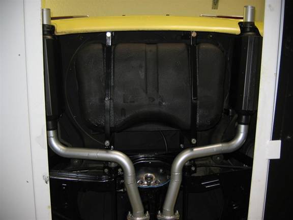 Had I used smaller mufflers placed flat rather than up and down, or round mufflers, I could probably have snaked the fuel filler line between them and the bottom of the car, precluding having the filler topsides.